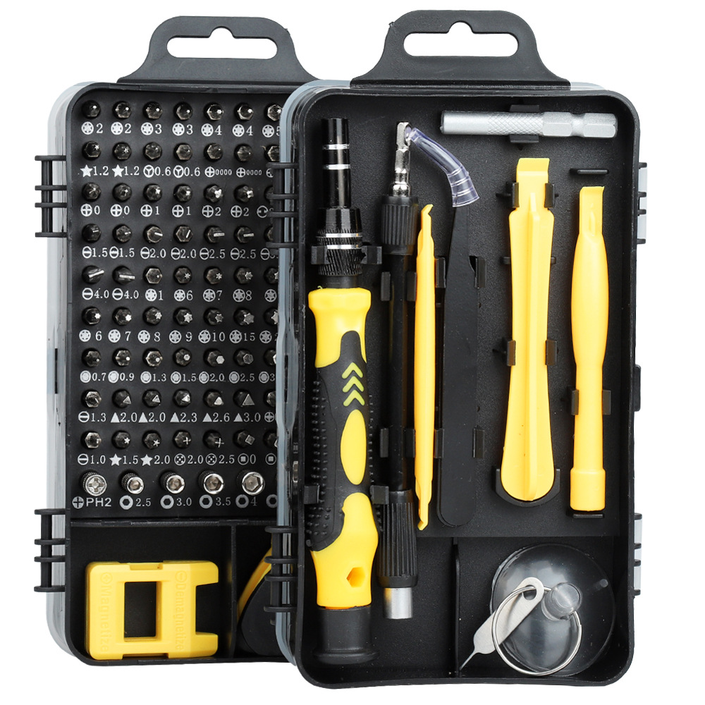 Bộ tua vít sửa chữa gia đình đa chức năng 115 chi tiết dễ dàng bảo quản tiện lợi trong hộp nhựa có khóa vít bảo vệ giúp tránh rơi vít.